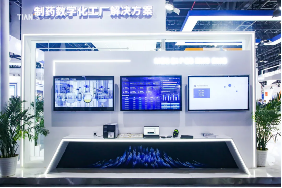 本屆展會天俱時集團位于核心展館國際一館,展臺科技風的設計形式,引得眾多觀眾駐足參觀交流。化學醫藥工程總承包、環保技術與工程總承包沙盤實景展示,生物醫藥工程總承包項目案例展示,數字化工廠融合生物醫藥公用工程、化學合成原料藥工藝過程及生產可視化看板、MES系統現場模擬等諸多內容,全方位體現了天俱時為醫藥企業設施建設提供一站式解決方案的能力和實力,精彩紛呈。